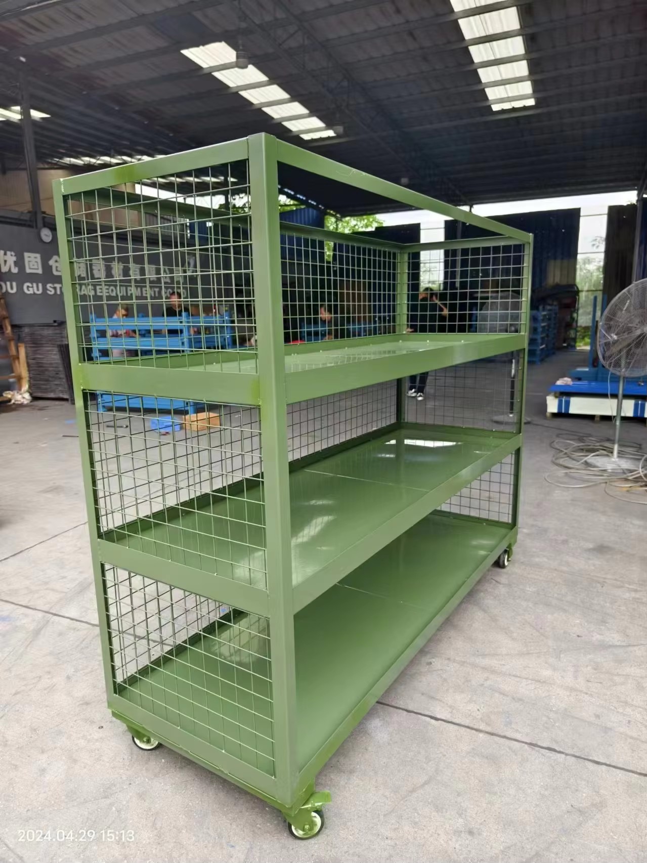 This three-tier mobile storage rack combines high capacity, security, and mobility to solve common industrial material handling challenges. Its mesh side protection and durable steel construction ensure safe transport of valuable items, while the multi-tier design maximizes space efficiency. It is a cost-effective solution for businesses looking to improve productivity and inventory management in high-demand environments.